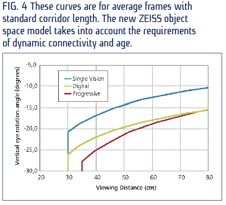 Although the new ZEISS object space model for SmartLife Digital and Progressive Lenses is set to about 80 cm at 15 degrees downgaze, the specifications are different at closer viewing ranges. This is because progressive wearers require a wide intermediate visual field. A progressive lens with a corridor that is too short would be unusable at 50 to 80 cm, so SmartLife Progressive Lenses are available with variable corridor lengths.