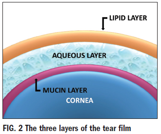 and composition of tears. The tear film consists of three layers: lipid, aqueous and